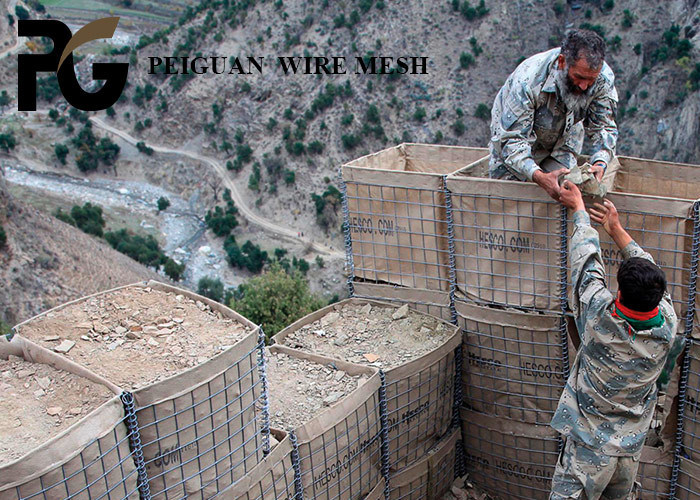 Il bastione di è un nuovo tipo di barriera difensiva che può essere costruito dalle pile multiple per formare un sistema di barriera fatto del saldato di, di maglia d'acciaio rivestita galvanizzata rivestita a caldo allineata con un tessuto resistente e non tessuto del geotessuto del polipropilene nei colori principalmente verdi e beige che possono essere usati per la protezione di perimetro, il controllo di frontiera ed i ripari dell'alloggio provvisorio.